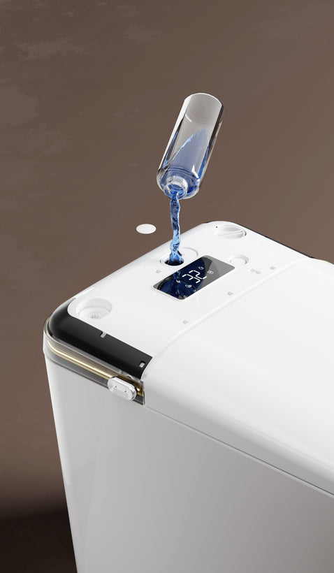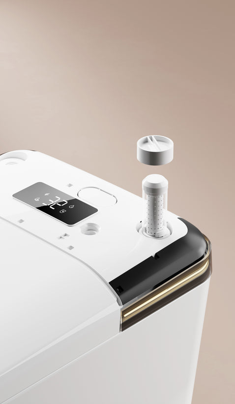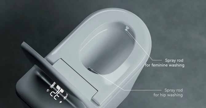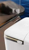 Its advanced hygiene suite includes an internal Foam Shield system, UV nozzle sterilisation, built-in aroma diffusion and a fully integrated cleaning-bar cartridge that releases fresh blue solution with every flush. This sealed in-body system keeps the bowl cleaner for longer while removing the need for exposed bottles or frequent manual maintenance — a hallmark of true flagship design.